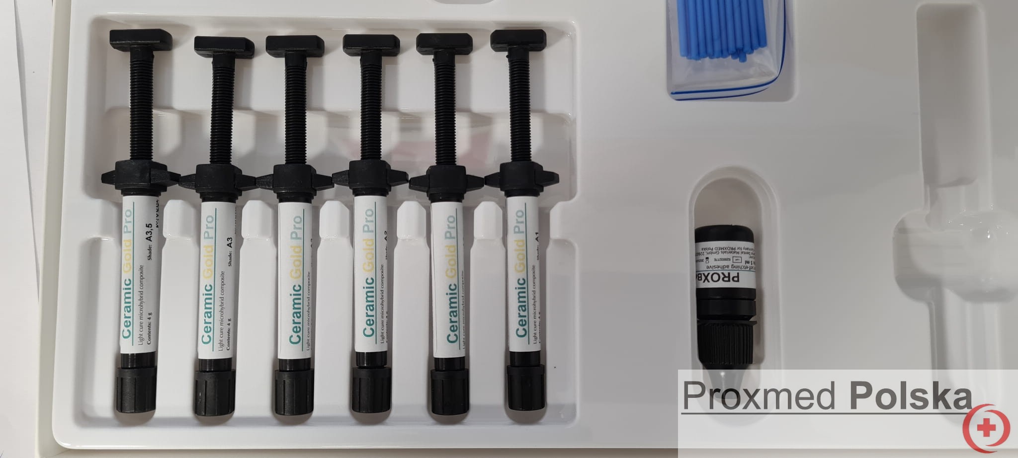 CERAMIC GOLD PRO to wysoko estetyczny materiał hybrydowy z dużą zawartością ceramiki w składzie(87%) , pozwala uzyskać w prosty sposób efekty zbliżone do natury zęba.Poprzez swą konsystencję,bardzo ułatwia pracę.Doceniony przez stomatologów za wysoki połysk oraz parametry.88 % wypełniacza w składzie skurcz polimerayzacyjny 1%.Kolory zgodne z kolornikiem Vita.Strzykawki 4 g X 6
